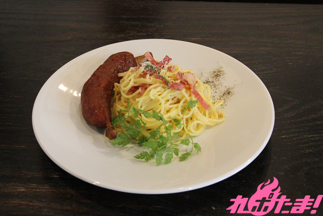 大きなウィンナーでボリューム満点! リィンの独自料理である猟師風カルボナーラ。