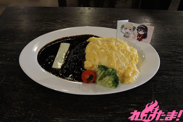 英梨々の金髪をオムライスの卵で、詩羽の黒髪を黒カレーで表現。