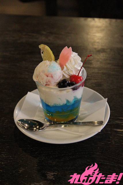 [マンゴーソース+パイナップルゼリー+パンナコッタ+ホイップ+さくらんぼ+ブルーベリー+桜チョコ+いちごショートケーキアイス+水色シュガー+ライム]