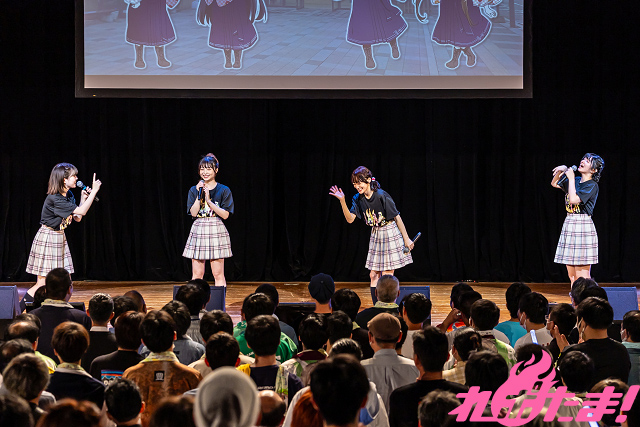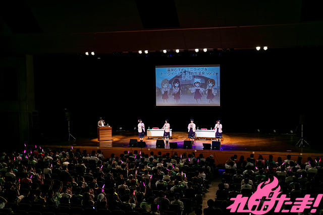 当日は天津 向氏が司会のもと、飯坂温泉の温泉むすめ、飯坂真尋役・吉岡茉祐(飯坂温泉)、人吉青井役・青山吉能(人吉温泉)、かみのやま庵役・進藤あまね(かみのやま温泉)、伊香保葉凪役・茜屋日海夏(伊香保温泉)が登壇。集まった「ぽか旦那」、「ぽか女将」(ファン)はトークとライブで大いに盛り上がった。