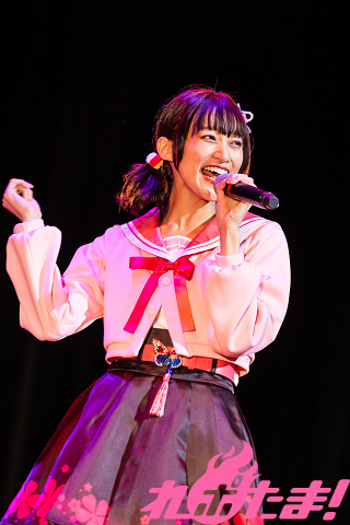 そして、いよいよライブが開幕! まずは青山さんと進藤さんがこぶしを突き上げ、客席に手を伸ばしながら「未来イマジネーション!」を披露。続いて茜屋さんが葉凪のソロ曲「わたしオトナ化プラン♪」を歌唱。ステージを歩きながら笑顔で歌う彼女を、ピンクのサイリウムが包んでいた。
