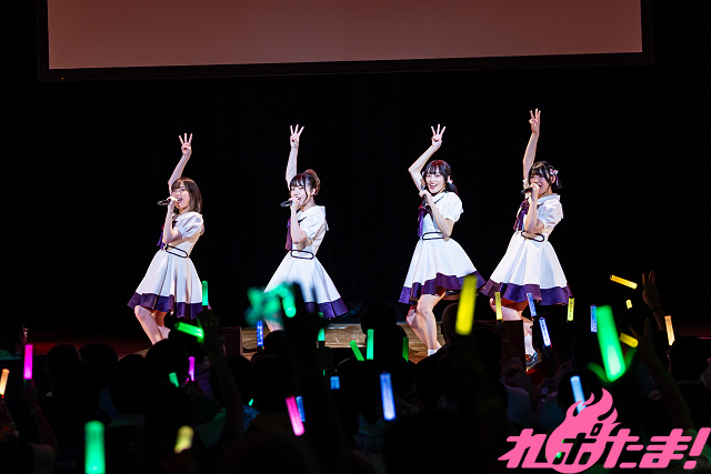 衣装チェンジして臨んだライブパートでは、まずは吉岡さんが客席をあおりながら「アッツイ!熱いぜ!!」を歌唱。続いて茜屋さんが「今日は来てくれてありがとう!」と感謝の気持ちを伝えつつ「わたしオトナ化プラン♪」を披露。さらに青山さんと進藤さんが両腕を振りながら「未来イマジネーション!」を歌唱した。