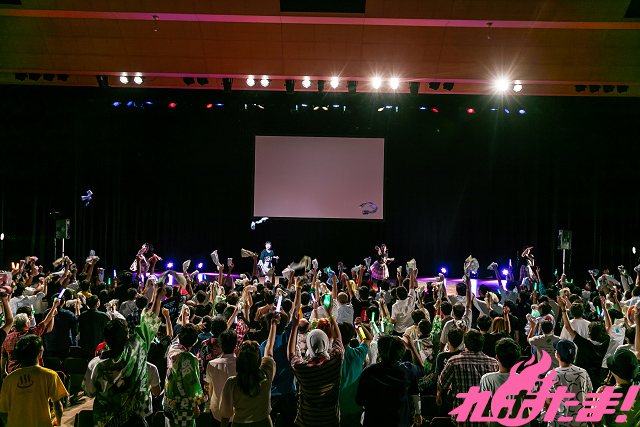 「春、鮮やかなピンク色の花が咲き誇る花ももの里」では、ファンがピンクのサイリウムで雰囲気づくりを後押し。茜屋さんが進藤さんに「君のために、この満開の花で花占いをしたい!」、また「夏、美しい黄色い光が飛び交う“蛍の群生地”」では進藤さんから吉岡さんに即席の“フクロウ語”で「君の方がきれいだよ」とそれぞれ甘い言葉が贈られた。