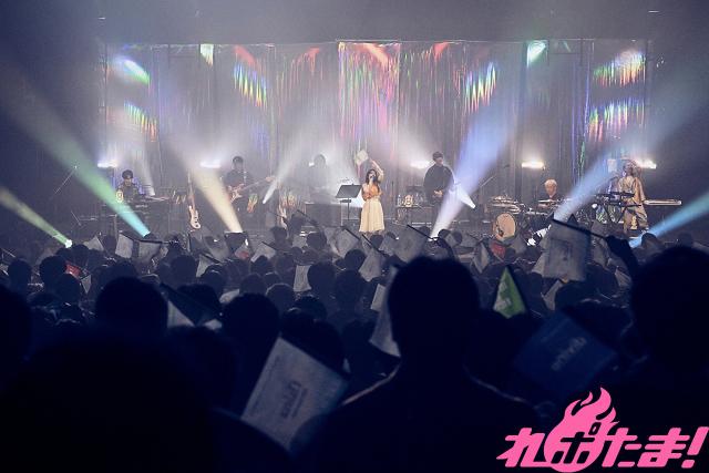 佐藤さんのピアノがフィーチャーされた「君という特異点」、「The Color to Gray World」と歌唱した後は、本編最後の曲「white light」へ。ステージ上の3人とバックバンドの面々がシルエットのように浮かび上がる演出も相まって、幻想的な空間が広がっていった。