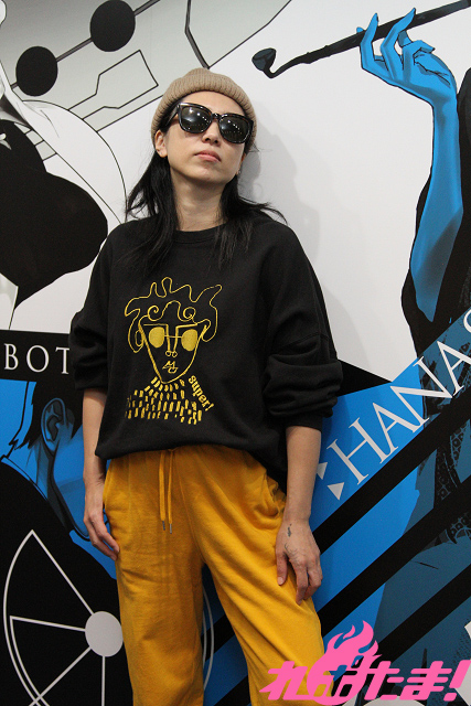 ▲自身がデザインしたスウェットを着用するAyumuさん
