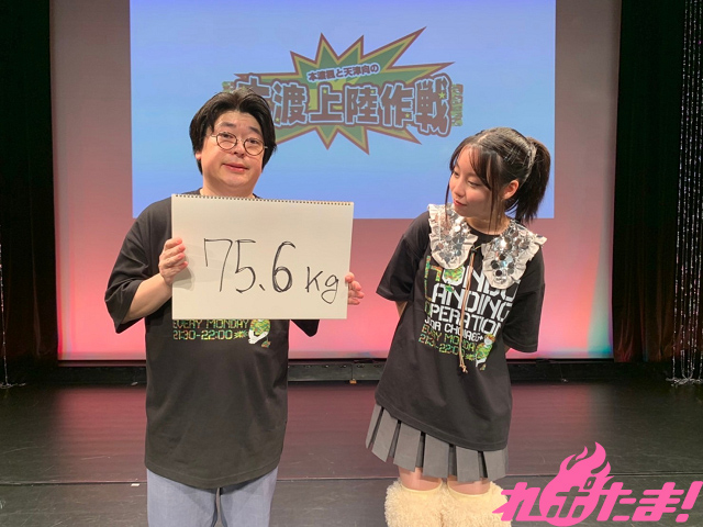 不正がないようにスタッフが同行、楽屋に備え付けられた体重計を使った計量の結果、7.1キログラムの減量に成功! 4名分のチケット代を抽せんで還元することになったものの、向さんの顔には充実感が漂っていた(ように見えた)。
