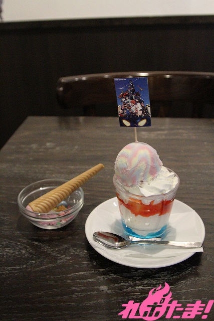 虹色に輝くグリッドマンのドリンク。カラフルなフルーツが浮かぶ豪華な1杯!