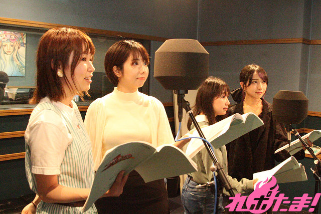 今回は舎川あこ役・池田海咲さん、田野ながれ役・藤崎桃子さん、橋舟一花役・新田ほのかさん、テガちゃん役・月野もあさんに収録の感想や見どころをお聞きした。