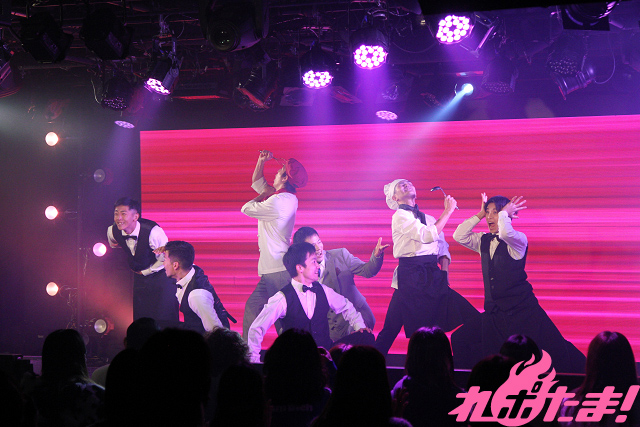 最後は「来場者全員へのお土産」として、キャスト全員によるダンスパフォーマンスが行なわれた。毛色の違う2曲を華麗な踊りで表現し、ビスタリアンたちから大きな拍手を全身に受けていた。パフォーマンスが終わると、顔中に汗を光らせながら「またのご来店を心よりお待ちしています!」とあいさつし、拍手と歓声に見送られながらステージは終了した。
