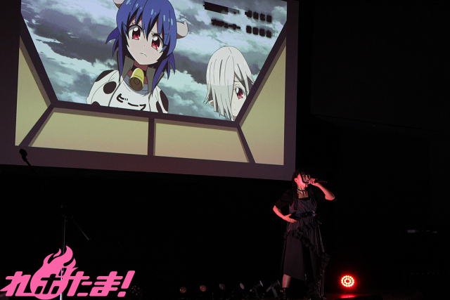 『北●の拳』の主人公が登場するなど、ツッコミどころ満載のアニメ本編が上映されたあと、鈴木さんがOPテーマ曲「Apocalypse Day」のテレビサイズを披露した。「これだけメタル調な曲は初めて歌いました」というアッパーソングを熱唱。真っ赤に染まったステージに、会場に集まった邪教徒(ファン)は大興奮だった。