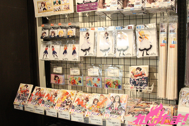 ▲店頭では作品関連グッズを販売。ここでしか購入できない、描き下ろしイラストを使った限定グッズも!