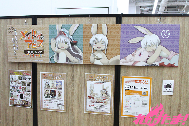 会場では、”ナナチ”をメインに主人公の”リコ”や”レグ”、”プルシュカ”、”ファプタ”、”マアアさん”の新作グッズを先行販売。また、POPUPSHOPならではの購入特典のプレゼントもございます。