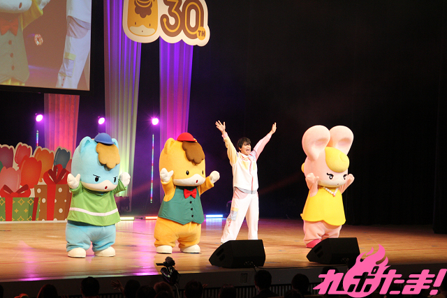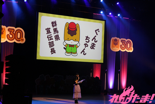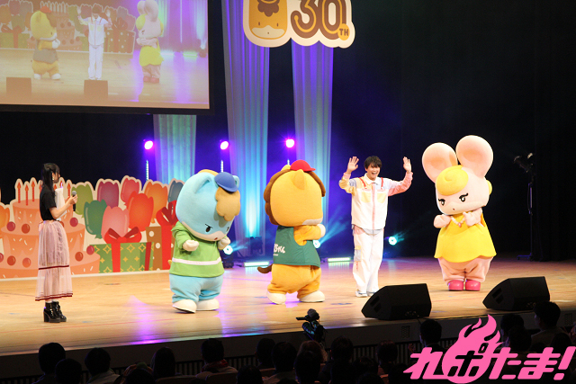 活動30周年を迎えるぐんまちゃん。お誕生日会は2部構成で、「第1部」ではアニメ『ぐんまちゃん』の上映のほか、全国の人気ご当地キャラたちが登場する「PRステージ」が行なわれた。そして「第2部」ではぐんまちゃん/あおま/みーみのほか、キャラたちやアーティスト、俳優、声優らが駆け付け、ぐんまちゃんを祝福した。