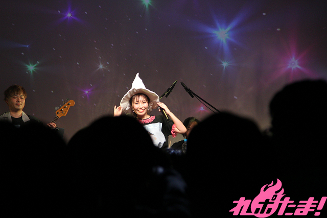 ここからはテレビアニメ『アニマエール!』でカバーした楽曲を披露。ポンポンを手にキレのある振り付けで「じょいふる」を歌唱し、「いつかラップパートも歌いたい」と“野望”を語った「CRAZY GONNA CRAZY」を歌唱すると、最後はゲーム『片恋いコントラスト -way of parting-』エンディングテーマ「時のFoliage」をしっとりと歌い上げた。