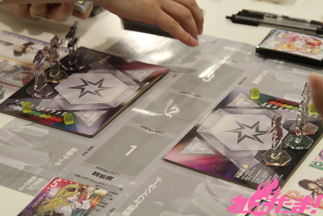 プロデューサーのかく氏からのあいさつ、そしてルール説明が行なわれた開会式のあとは「ライブ、スタート!」の掛け声で対戦スタート! 真剣なまなざしで相手のステージ(盤面)を見つめたり、ガッツポーズを見せたり、はたまた悔しがったりと、さまざまなリアクションをするプレイヤーたち。