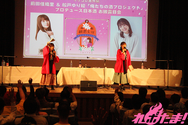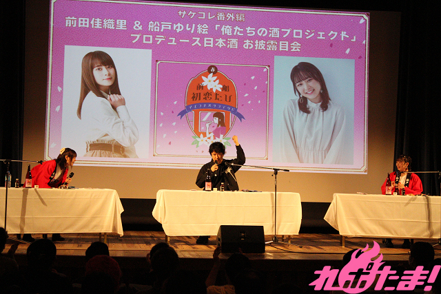 日本酒飲み比べイベント「Tokyo SAKE Collection ~サケコレ~」に出演する前田佳織里と船戸ゆり絵がプロデュースした日本酒第3弾『前船初恋たび』。本作の完成記念イベントが2024年4月7日(日)に東京・浅草「雷5656会館 ときわホール」にて開催された。