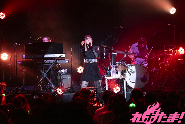 クラップが響くなか「Here I am」、赤い光を浴びて「going forward」、さらにゆるやかな空気のなかで「ビターフラッペ」と新曲3曲を続けて披露すると、続いてのMCでは衣装について言及。