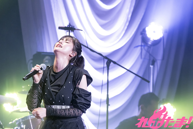 ここからはアコースティックコーナー。ルームライトを横に置き、ムードたっぷりのなか「LonelyBlueが終わる頃には」、さらに「ソノヒ」を続けて歌唱した。