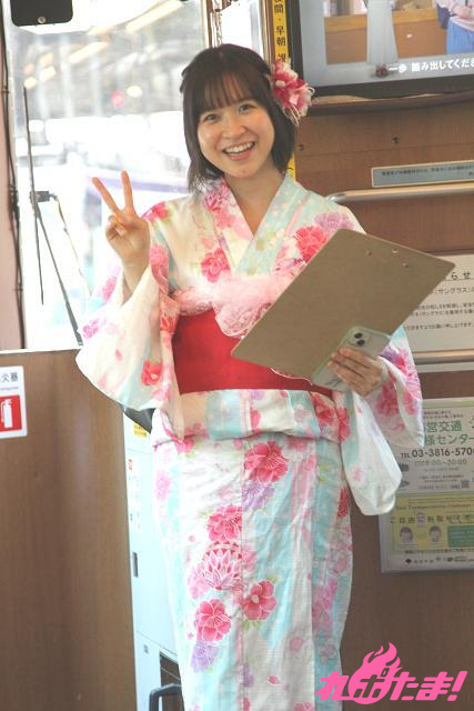 終着停留場の早稲田停留場まで少し時間があるということで、参加者からの質問に答える「Q&Aコーナー」を急きょ展開。「今日着ている浴衣のテーマは?」という質問に「1stシングル『サプライズ』を意識したコーデにしました。(帯の)大きなリボンもサプライズ衣装に寄せてます!」、「ヘッドマークに描かれたリスのイラストのこだわりは?」という質問には「優しい雰囲気を出したかったので、ベージュの色にしました。名前は絶賛募集中です(笑)!」と回答していた。