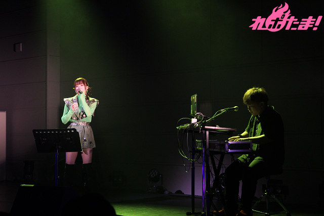 ここからは「ピアノコーナー」。 1月のソロライブでも伴奏を務めた高橋 剛さんの演奏にのせ、3曲披露した。