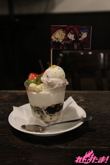 Guilty Kissをイメージした黒と白と赤のパフェ。