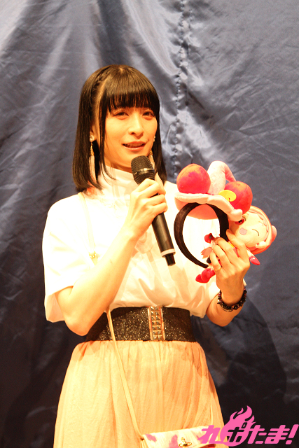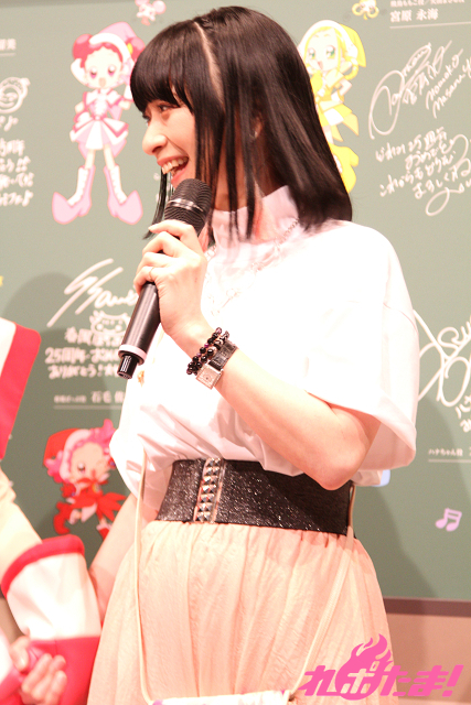 さらに、どれみの妹・春風ぽっぷのぬいぐるみや、着用するとアナタもどれみになれる(?)カチューシャなど、魅力的なグッズを紹介していた。