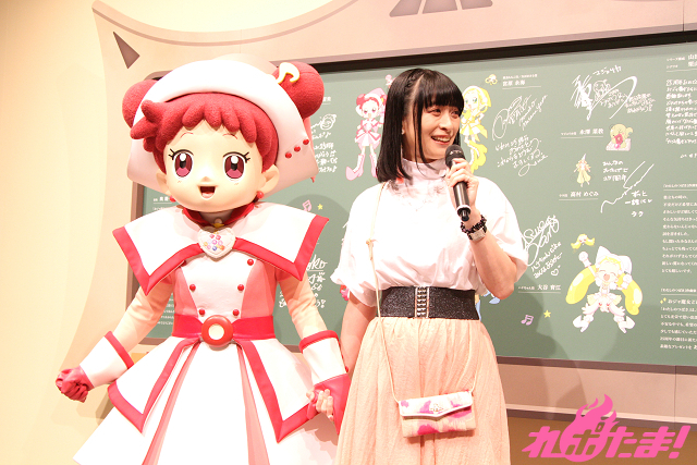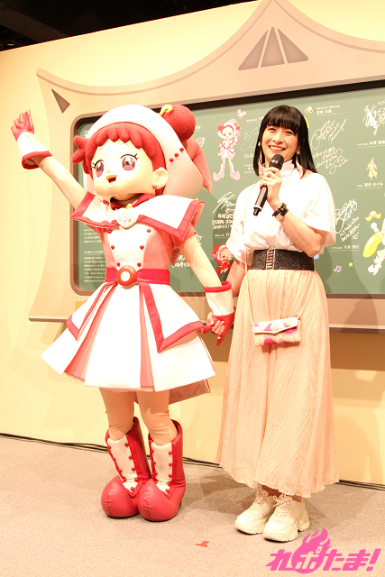 このたび、メディア向けの発表会イベントが開催され、本作のプロデューサーである関 弘美氏が司会のもと、主人公の春風どれみ役・千葉千恵巳さん、着ぐるみのどれみちゃんが登壇した。