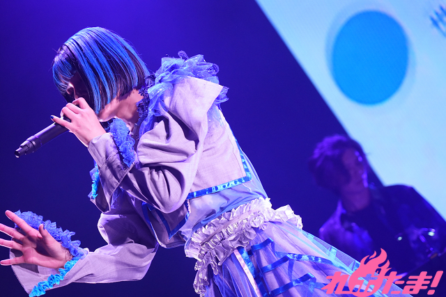 「愛はときに、人の心にほの暗い影を落とす」と切り出し、闇の色が濃いナンバーを次々歌唱していく。アニメ『魔法科高校の劣等生』第3シーズン「スティープルチェース編」EDテーマ「スノーノワール」、「あいらぶゆー」、そして「完璧彼女」と、時折狂気的な表情も浮かべながら次々と披露していき、マイクスタンドに手をかけながら「ビタースイート」を歌い上げた。