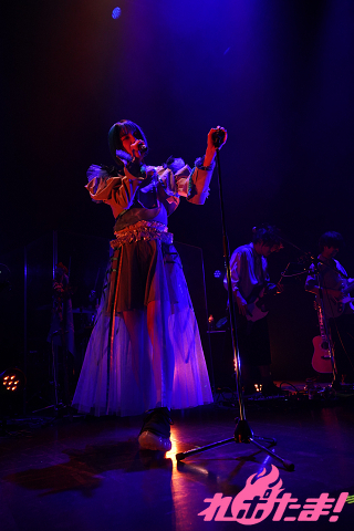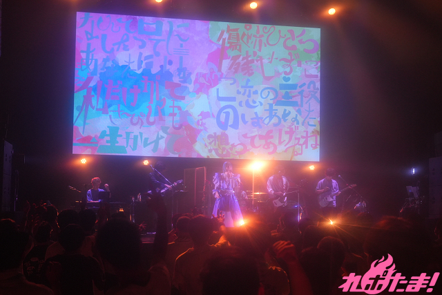「恋愛だけが愛じゃない」と切り出したみあが続けて歌ったのは「薄明」。力強くまくしたてるように歌い、「春嵐」では会場に向けてマイクを差し出し、さらに「タオルの準備はできてますか?」とオーディエンスに問いかけ、タオルを振り回しながら「醒めないで、青春」を歌唱。たゆたうように「ゴールデンレイ」を歌い上げると、場内の雰囲気は一変した。