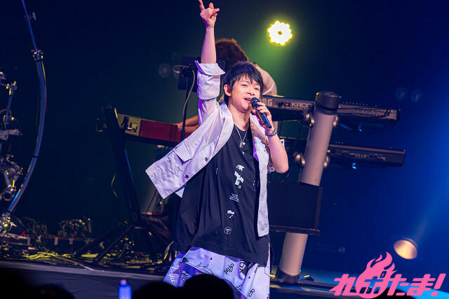 続いて登場した喜多修平は、人差し指を頭上に突きたてながら「世界で一番恋してる」、そして「フェスではあまり披露したことがない」というレア曲「金桜の契り」をパープルの光に照らされて歌い上げる。