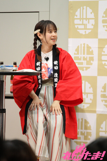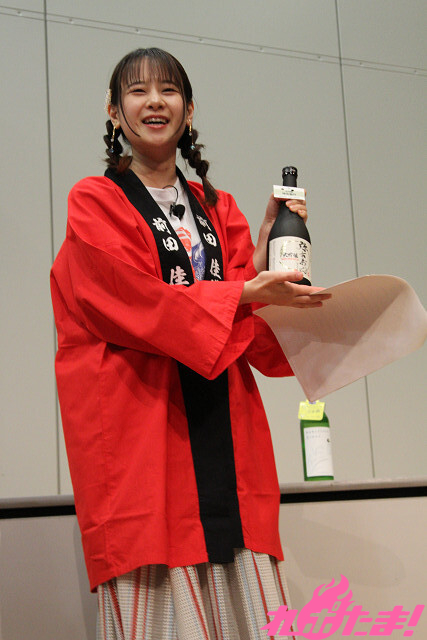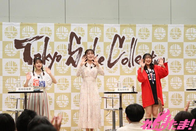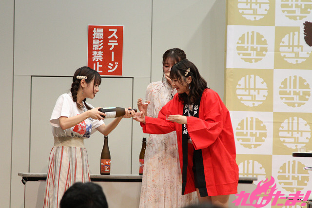 前田さんと船戸さんがプロデュースした日本酒『前船初恋たび』の紹介が行われたあとは、早くもエンディング。名残惜しそうに盃に日本酒を注ぎ足す3人だったが(笑)、後ろ髪をひかれつつ、手を振りながらステージをあとにした。