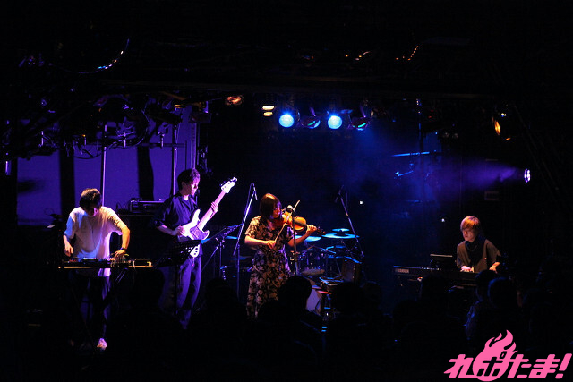 「平日の夜にお集まりいただき、ありがとうございます」と感謝の気持ちを伝えたあと、「BRITISH ROBOT」、「Anemone」とあらゆる楽器を用いて幻想的なステージを繰り広げた。