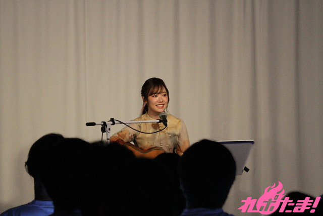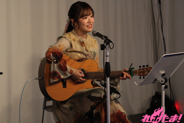 続いてはカバー曲。「ここから私のアコギ人生が始まったと言っても過言ではない」という、シンガーソングライター・YUI(YUI for 雨音薫)の「Good-bye days」をしっとりと披露。彼女に出会ったことで、アコースティックギターに興味を持ったそうで、丁寧に弾き語りをする姿が印象的だった。