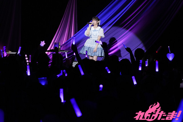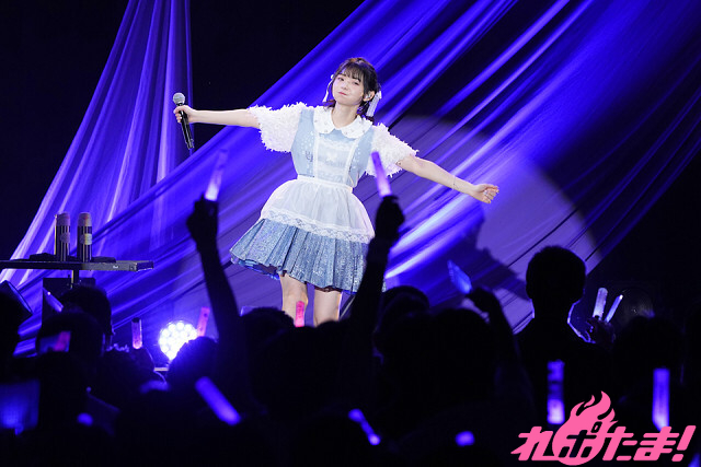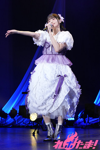庭園に置いてあるような、白いテーブルやイスが並んだステージ。その舞台にピッタリの優しい光を浴びて「あたしびより」、そして胸に手を当てて笑顔で「花言葉」を披露した。