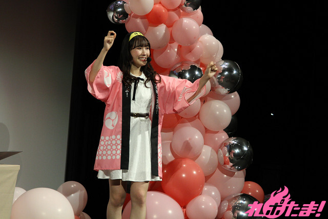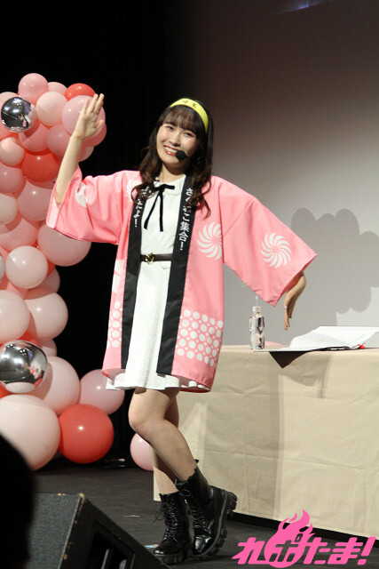 ピンク色のはっぴもお似合いで、会場に詰め掛けたさくねこ(ファン)は大盛り上がり!