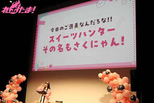 最初のコーナーは「今日のご褒美なんだろな!! スイーツハンター その名もさくにゃん」。スイーツが大好きな坂倉さんが、美味しい「ご褒美スイーツ」をかけてさまざまな企画に挑戦するコーナーだ。