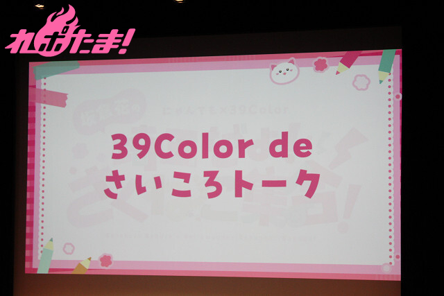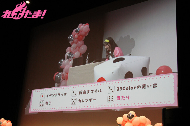 続く「39Color de さいころトーク」では、用意されたジャンボさいころの目に対応したトークを展開! 『39Color』のテーマソング「桜色スマイル」について「“好き”を詰め込んだ曲になっています。コール&レスポンスも楽しいので、どんどん歌っていきたいです!」とコメント。