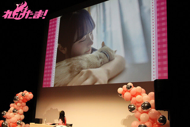「ねこ」というお題では、愛猫とのツーショット写真を公開し、さらに「イベントグッズ紹介」をこなしつつ、「1stカレンダーの見どころ」を語った。