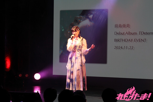 前島亜美のソロアーティストデビューアルバム『Determination』が2024年11月20日(水)にリリース! これを記念したイベントが11月22日(金)に東京・池袋Club Mixaで開催された。この日は彼女の誕生日当日ということで、お祝いムードに包まれるなか、トークやライブで盛り上がった。