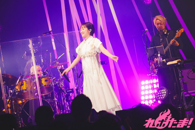 彼女を捉えるカメラがたくさん設置されているのを見て「(豪華な設備で)ここが東京ですか……」とつぶやき、オーディエンスを笑わせると、声優仲間との温かいエピソードも披露しつつ、次の曲へ。