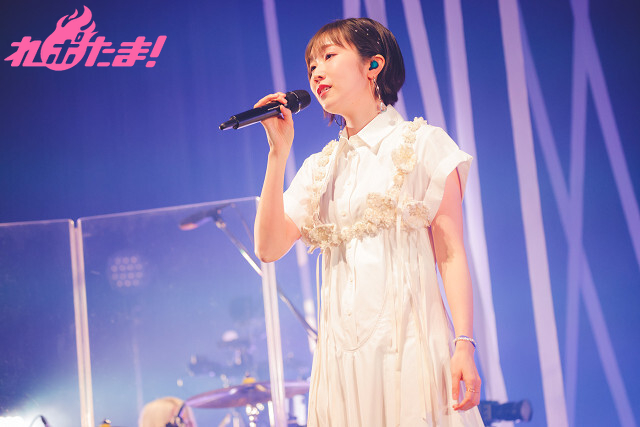 ライブは早くも最後のブロック。大阪公演ではセットリストに入っていなかった「ツボミノコエ」をファンに語り掛けるように歌唱すると、真っ赤な光が明滅するなか「DEAREST DROP」を披露。客席からは「オイ! オイ!」と田所さんの背中を押すような掛け声が自然と上がり、ここからさらにボルテージが上がっていく。「リトルソルジャー」を飛び跳ねるように、そして軽快にステップを踏みながら「アイボリー」を披露。最後はオーディエンスと一緒にジャンプしてステージを締めた。