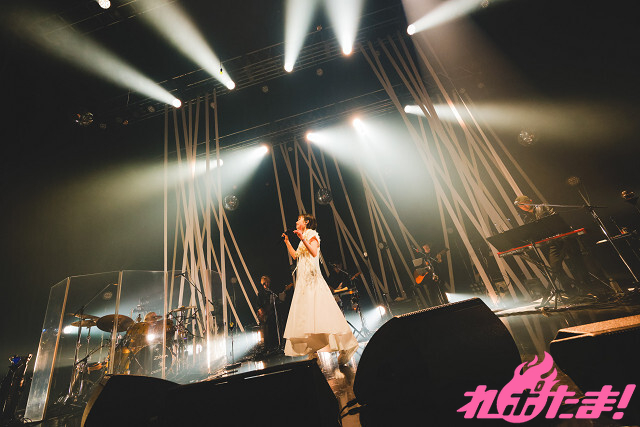 ステージ上には細い白布が張り巡らされた空間が広がり、照明が当たるたびに楽曲にマッチした雰囲気を創り出していた。