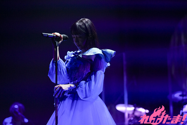 ここからはさらに楽曲を披露していく。まっすぐに前を見つめながら「246」、ゆったりとしたピアノソロから「気づいて!」を歌唱。変わって、赤い光に照らされながらアニメ『YAT安心!宇宙旅行』第2期エンディングテーマ「純」を披露し、「届けたい想い」、「あなたの名前」を切なさとともに歌い上げた。