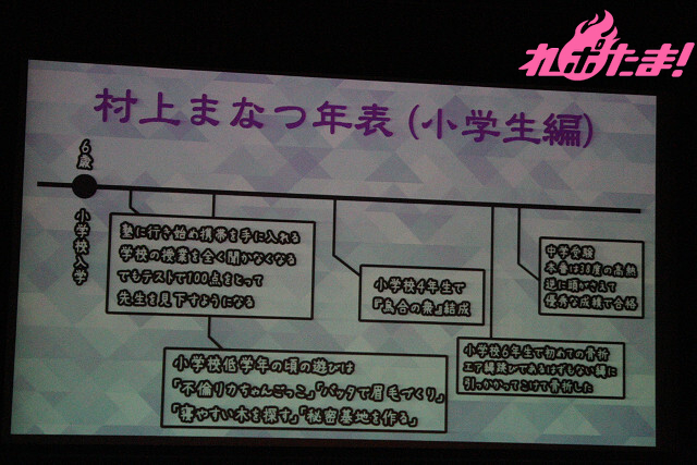 まずは「私のすべてさらけ出します…… 村上まなつ年表」コーナー。秘密のベールに包まれていた、幼少時代から学生時代にかけてのエピソードを一挙放出!