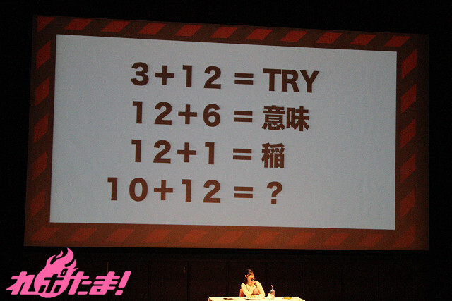「来場者に配られたカードに書かれた“数字”を足して、『50』になるようにせよ」というミッションは、客席から何人かを指名し、持っているカードの数字がピッタリ「50」になれば成功、というルールだ。