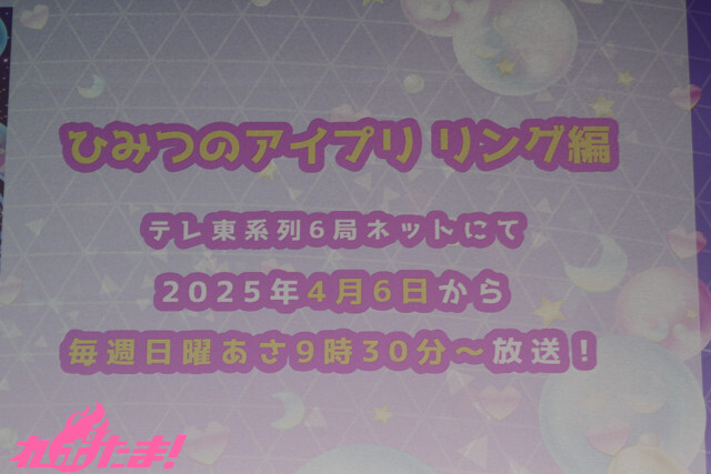 毎週日曜午前10時から好評放送中のテレビアニメ『ひみつのアイプリ』の第2期が4月より放送開始! 『ひみつのアイプリ リング編』の発表会が2025年2月27日(木)、東京カルチャーカルチャーで開催された。