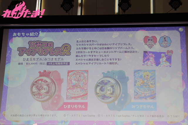 「ひみつのアイプリ ブレスR」、「ひみつのアイプリ ファイルバックセットR」といった新グッズの紹介も行われた。
