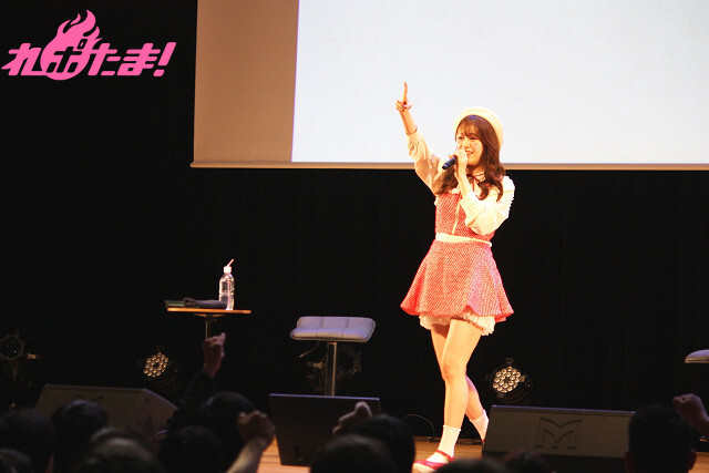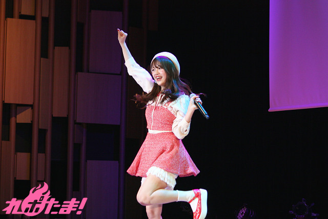 MCを担当するのは「第一回 ファンミーティング」からお馴染みの松井佐祐里さん。同じ赤のおそろいコーデの松井さんに寄り添いながら、一緒に手でハートの形を作ったりと、前回以上に仲良し度がアップした様子に、客席は大喜び!
