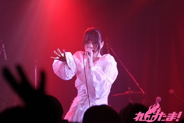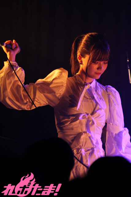 中盤戦は「Parole」からスタート。マイクスタンドに手をかけて「切り傷」、さらに切なさを込めて「ハイドレート」を歌唱すると、ゲーム『ダンまち 水と光のフルランド』主題歌「溺愛」を初披露した。