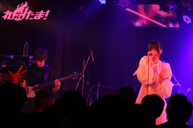 続くMCでは「作詞」についてのトークが繰り広げられた。以前、「THE IOLITE」で作詞を担当したボーカルのsanaさんだが、実は「溺愛」のほうが先に詞を書いたそう。作曲を担当した渡辺 翔さんに添削された結果「全然違う詞になって戻ってきた」というエピソードを披露し、場内を笑わせていた。